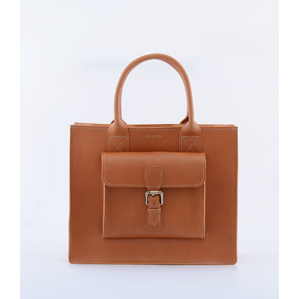 This tote has got a spacious main internal compartment and a front pocket.
