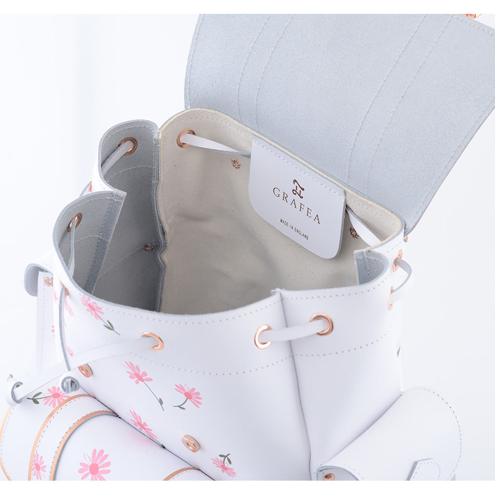This backpack has got a large main compartment that can be tightened using a leather cord and then closed with two magnetic buckles for easy access.