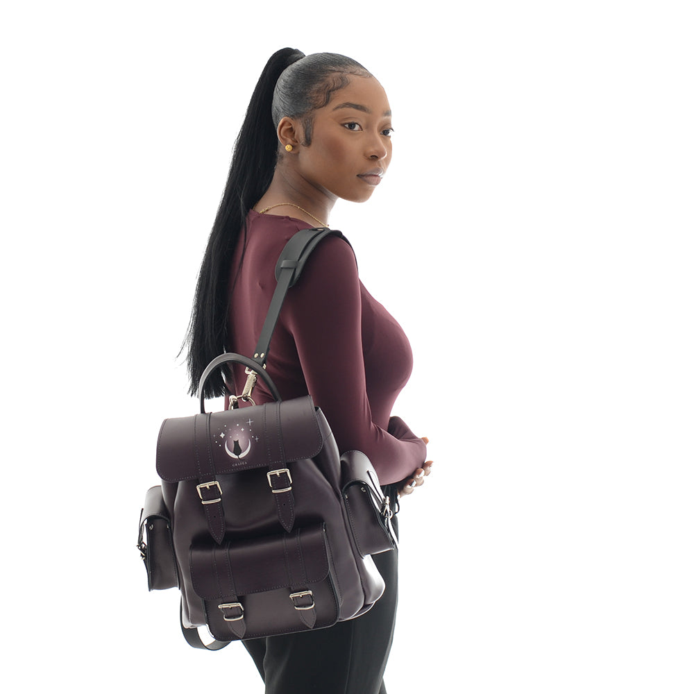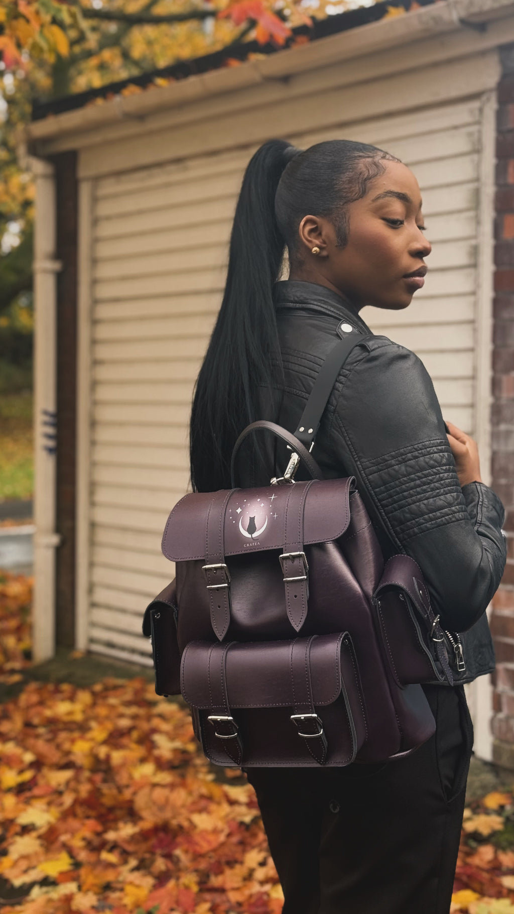 This backpack has got a large main compartment that can be tightened using a leather cord and then closed with two magnetic buckles for easy access.