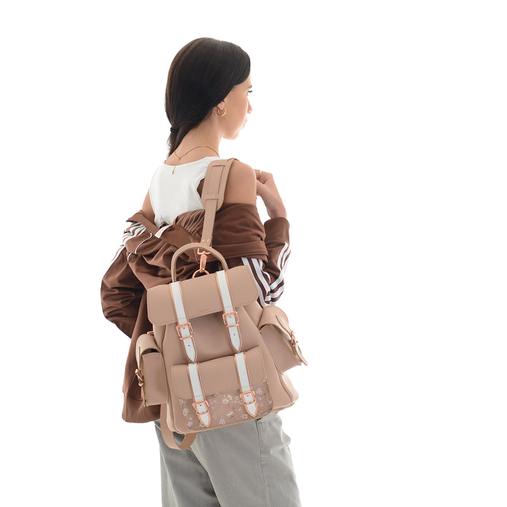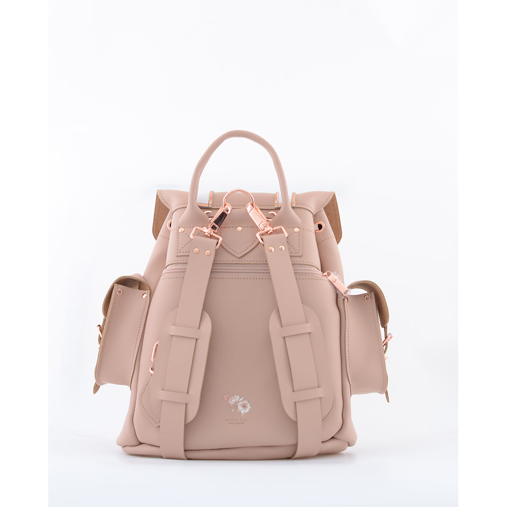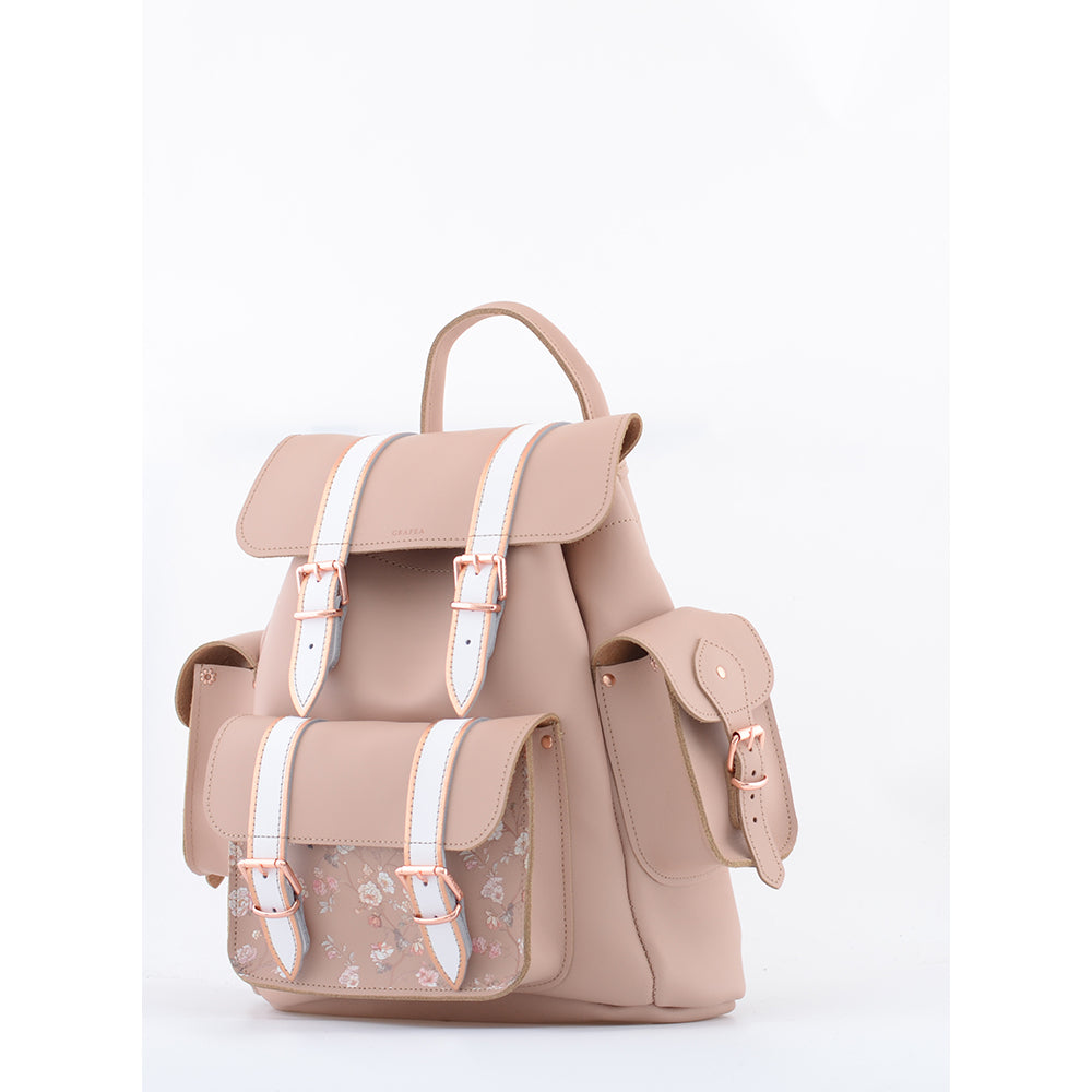 This backpack has got a large main compartment that can be tightened using a leather cord and then closed with two magnetic buckles for easy access.