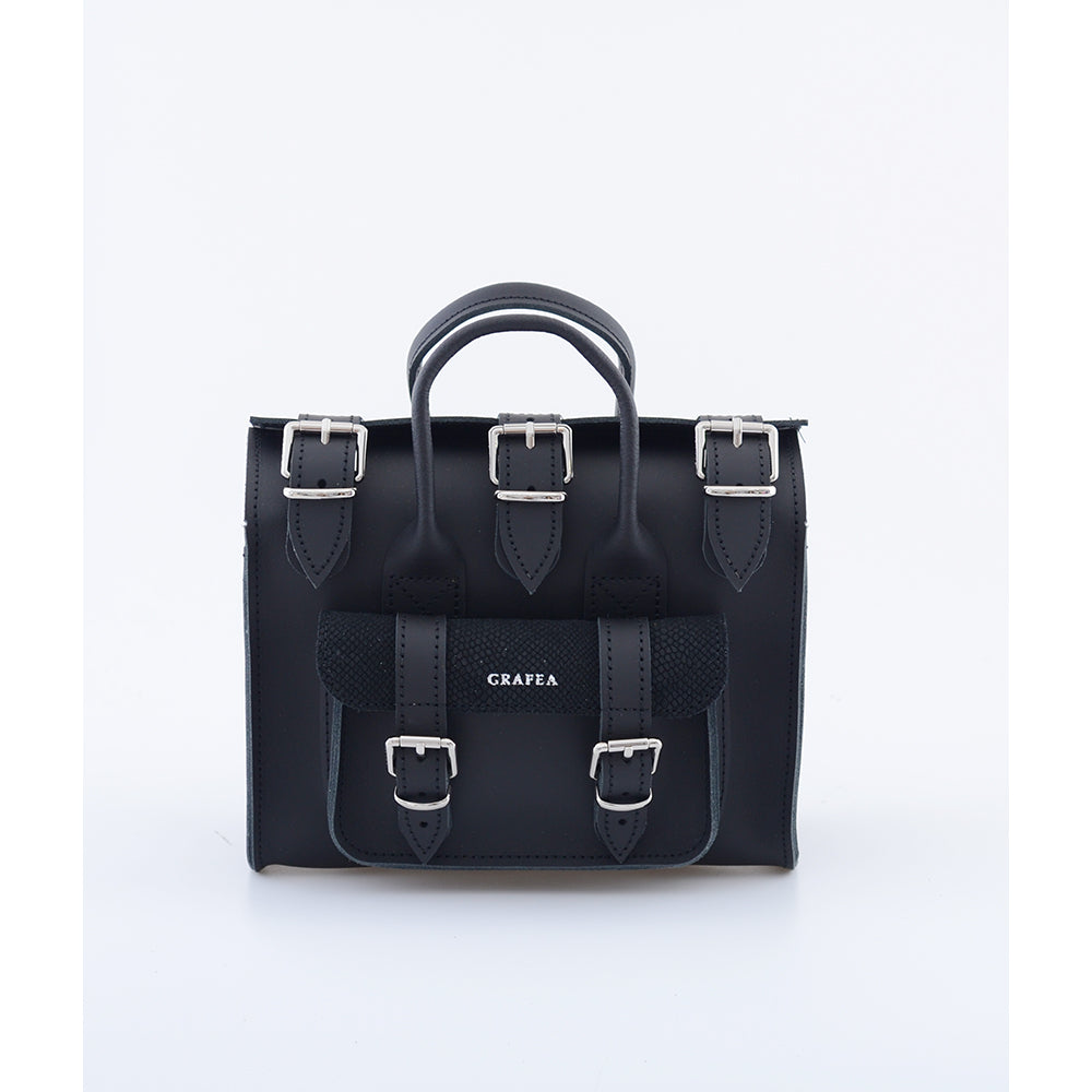 One front pocket, two handles on the top and a long adjustable/detachable shoulder strap.
