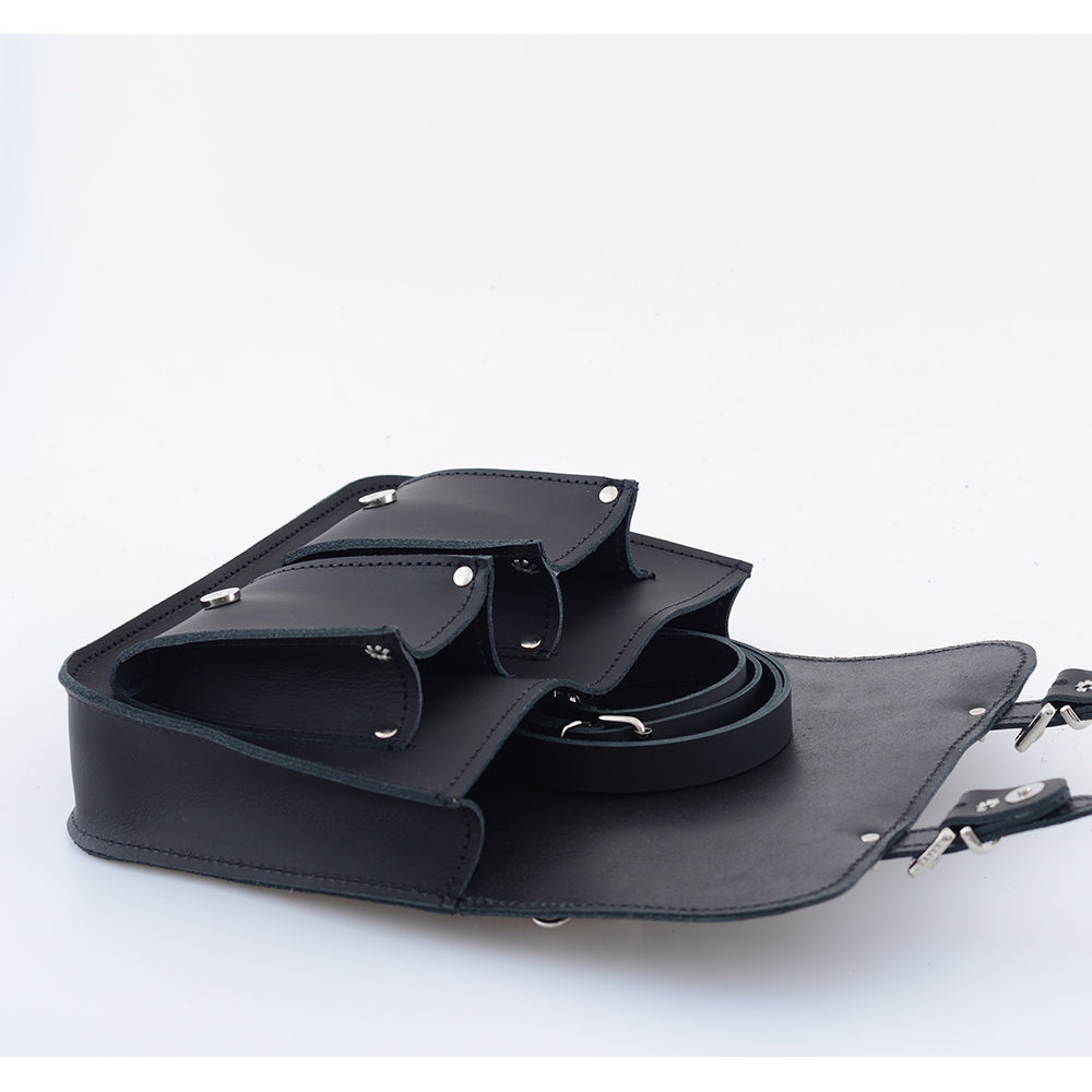 Die Tasche hat zwei Vordertaschen, ein Innenfach und einen verstellbaren Schultergurt (abnehmbar).