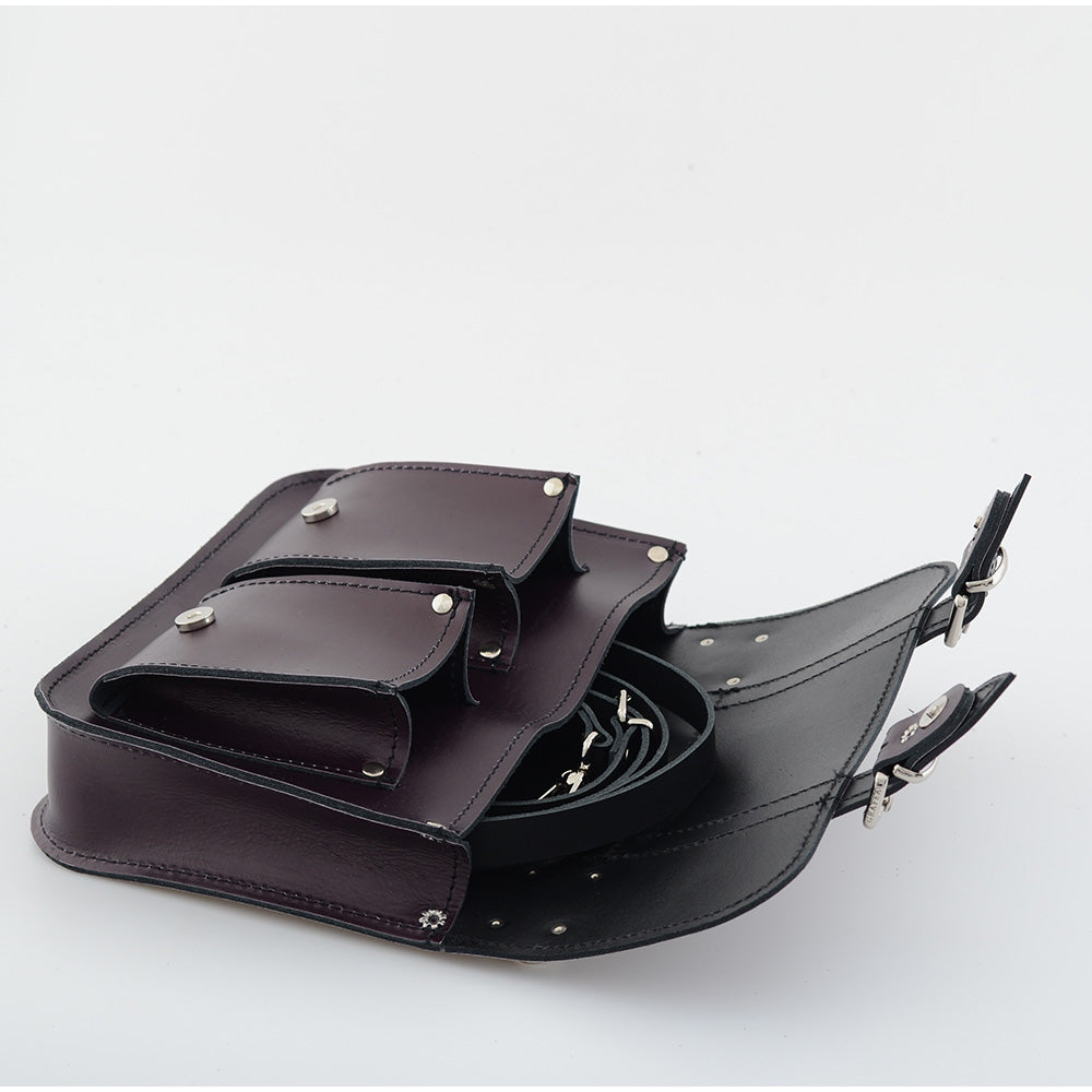 Die Tasche hat zwei Vordertaschen, ein Innenfach und einen verstellbaren Schultergurt (abnehmbar).