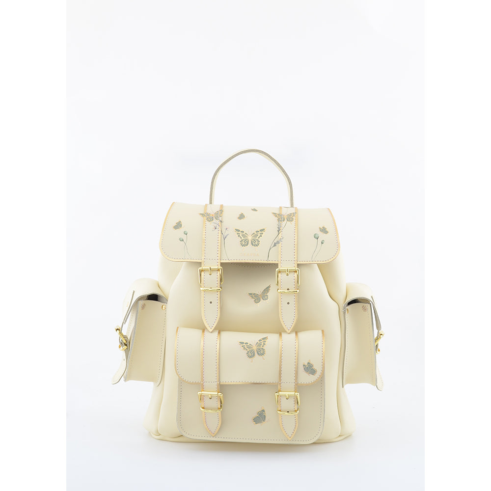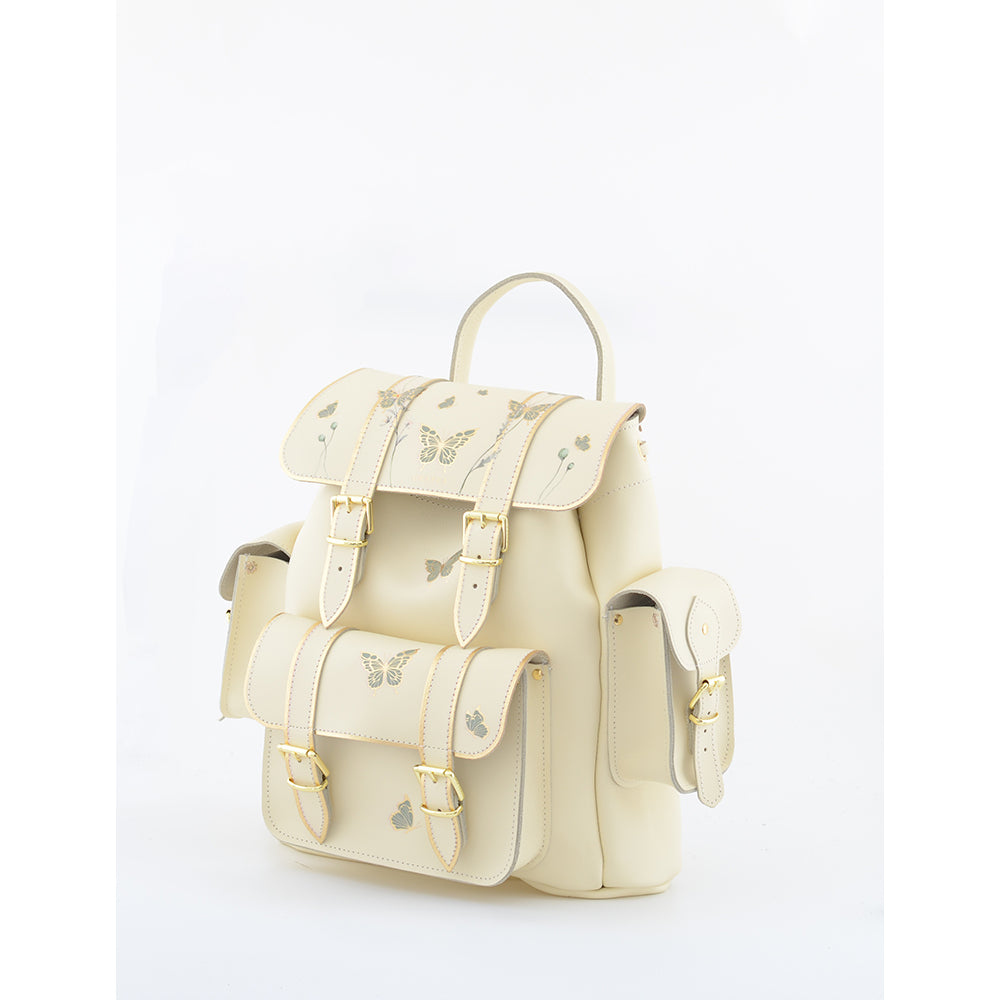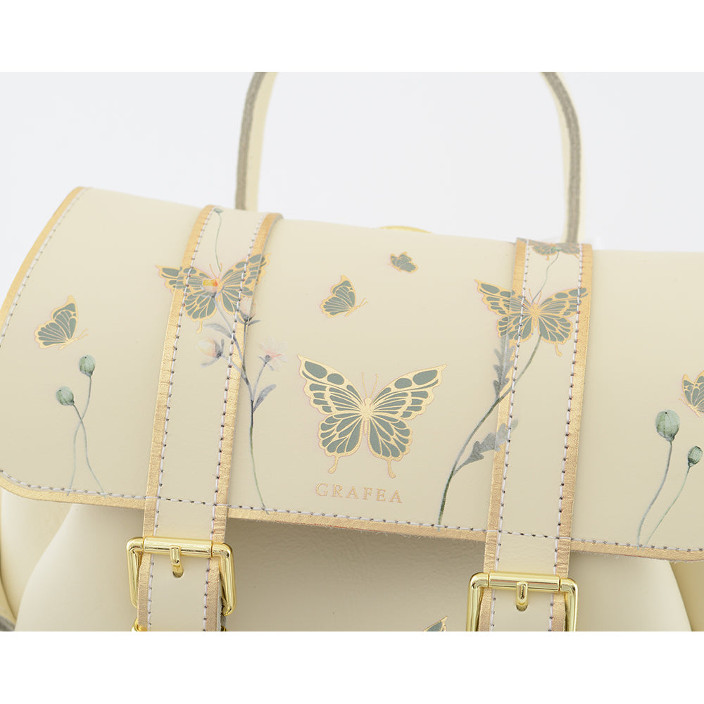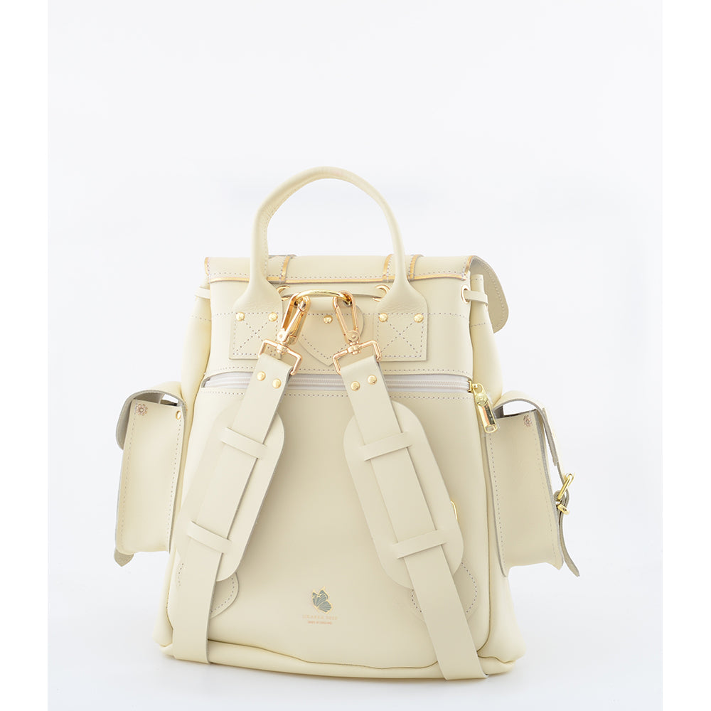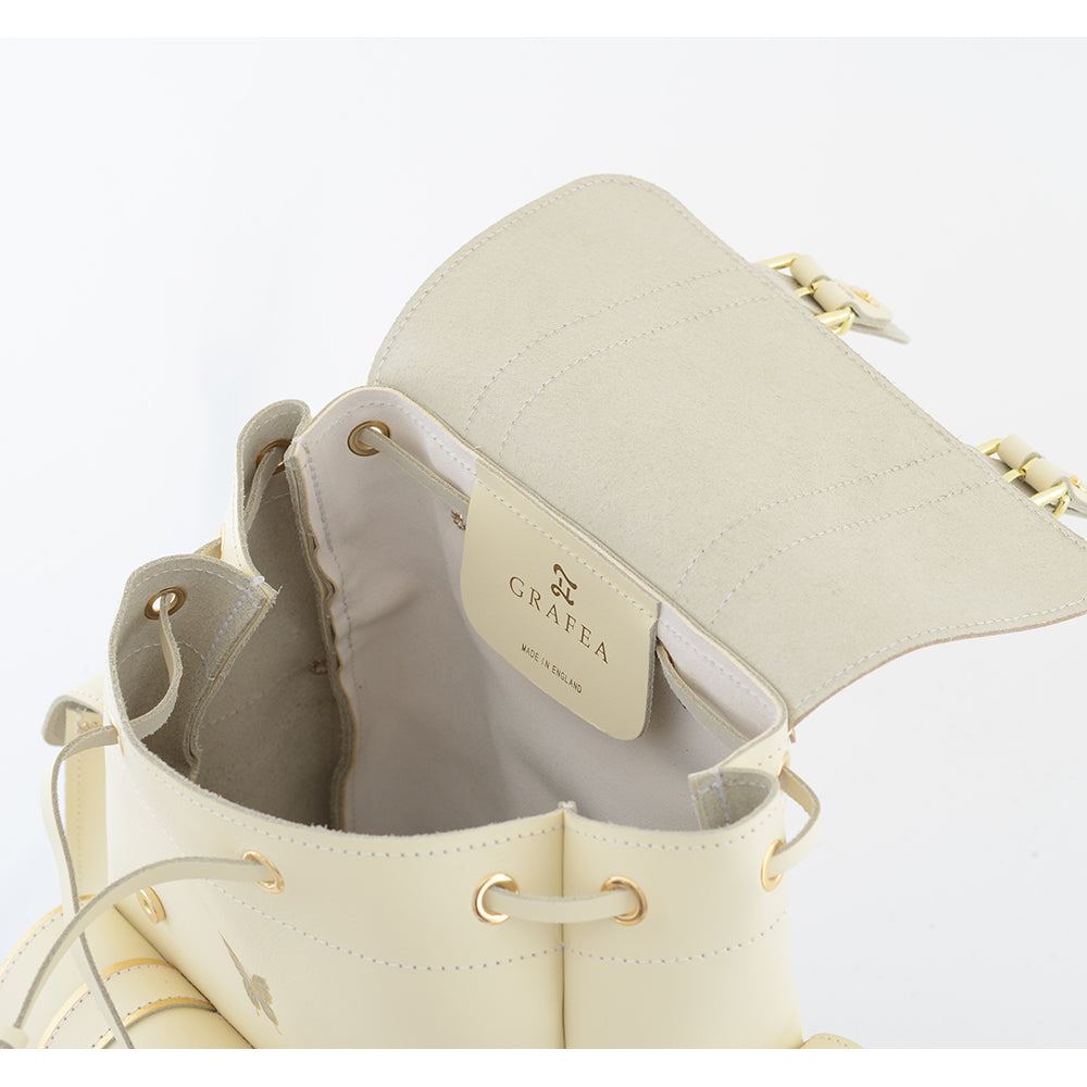 メインコンパートメントは内側の革紐と、バッグ正面上部の2本のマグネットボタン付きバックルで簡単に開閉できます。
