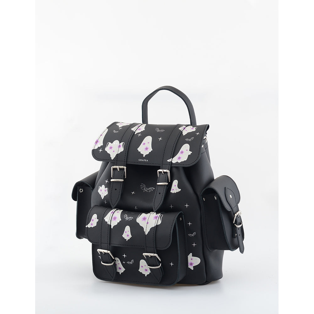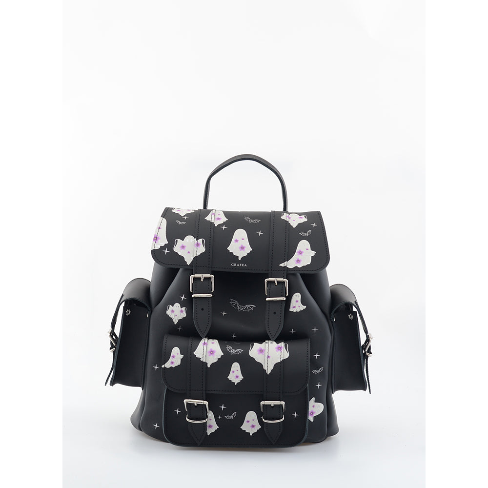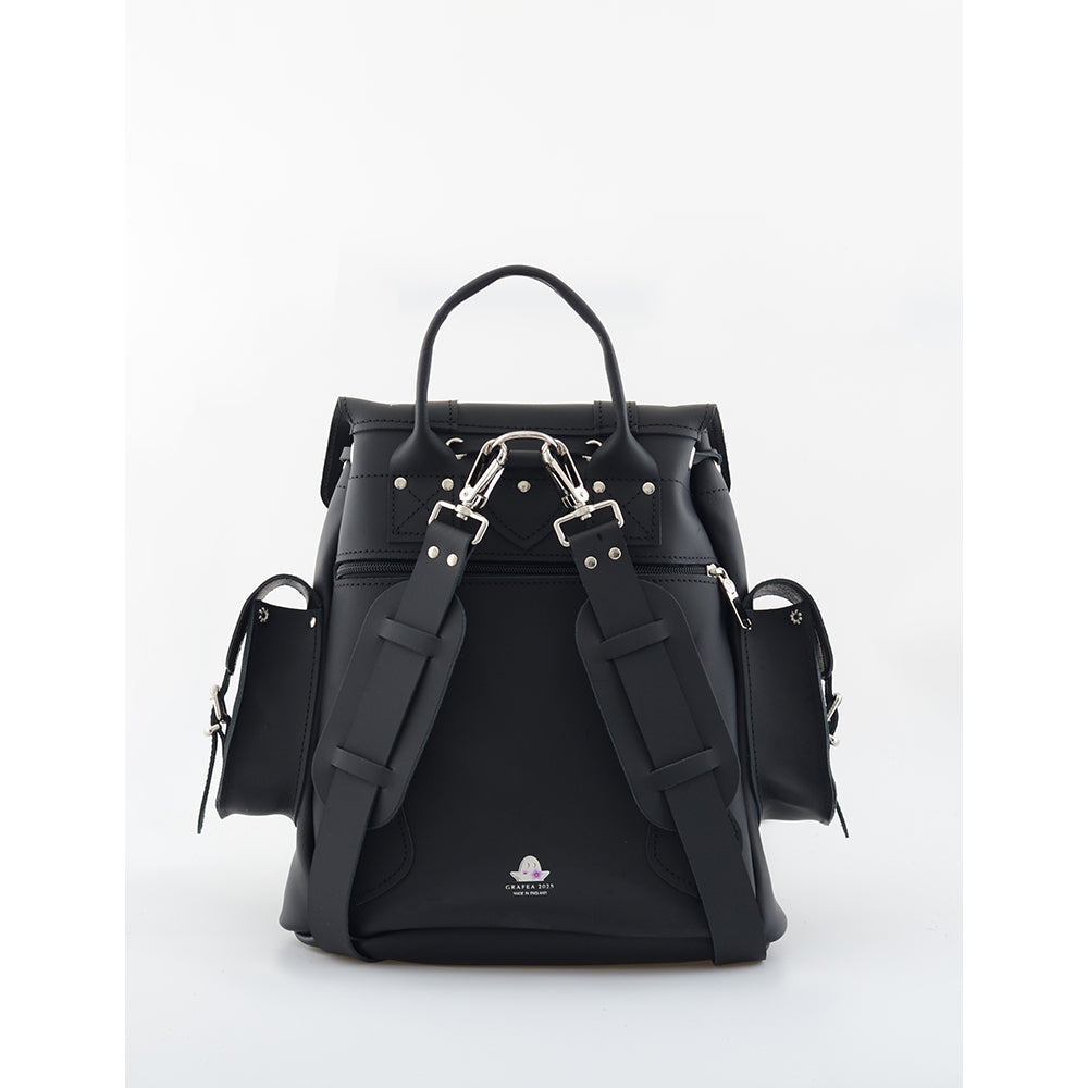 У рюкзака есть удобная кожаная ручка. Две лямки отстегиваются и регулируются.