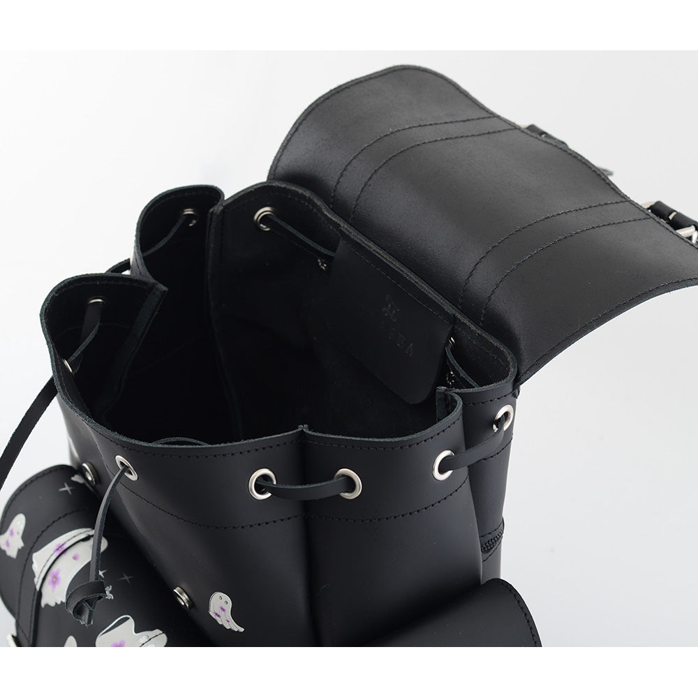 Большой основной отсек, затягиваемый кожаным шнурком и застёгивается на 2 магнитных застёжки