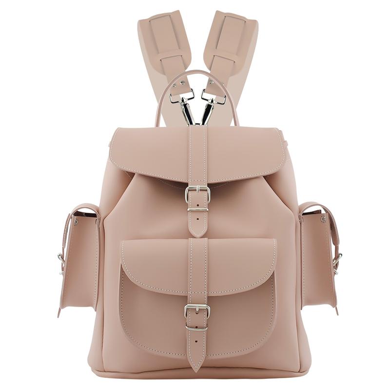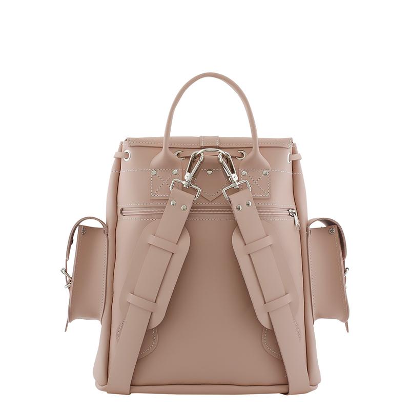 这款背包有一个手柄与两条可调节也可拆卸的皮质肩带。