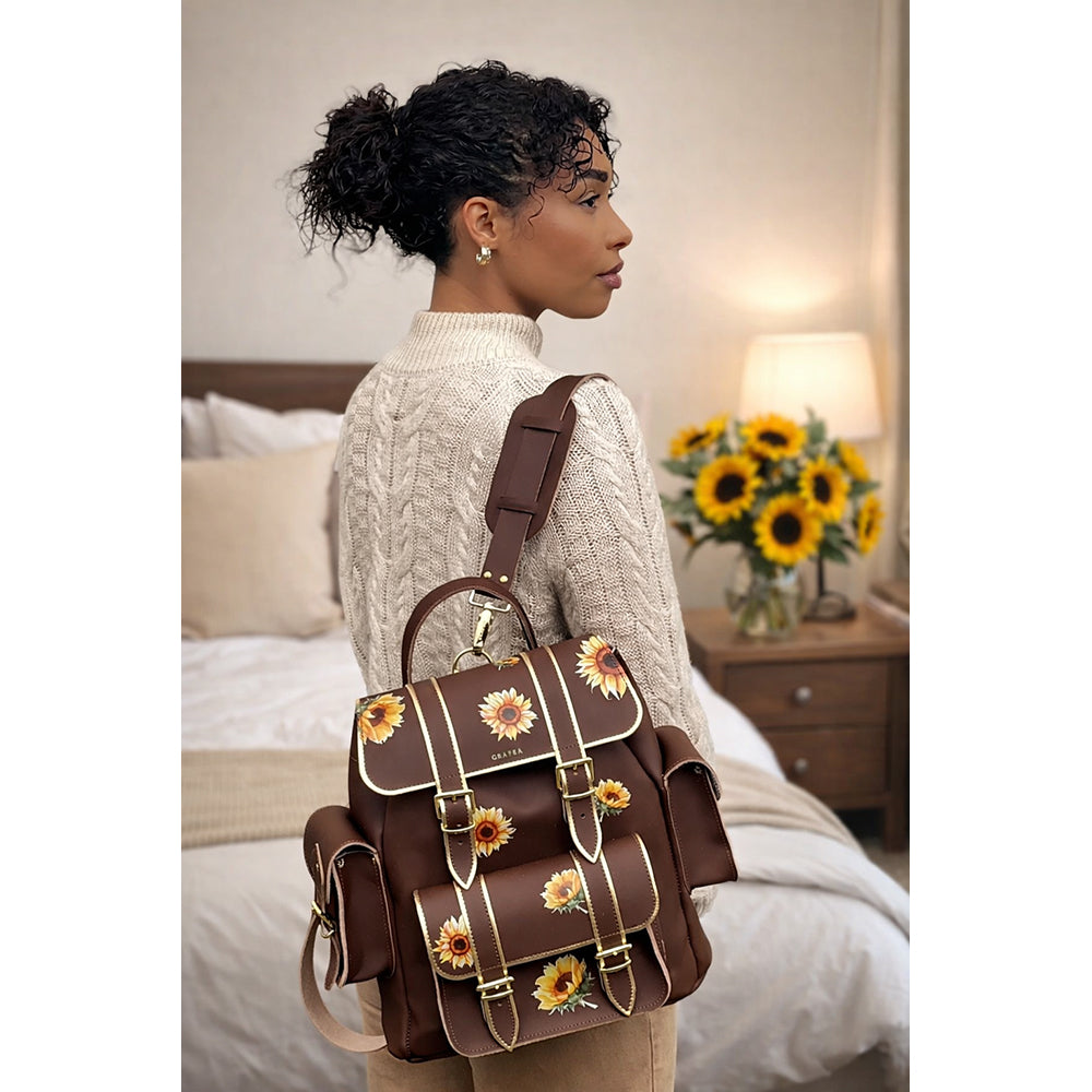 这款背包有一个手柄与两条可调节也可拆卸的皮质肩带。