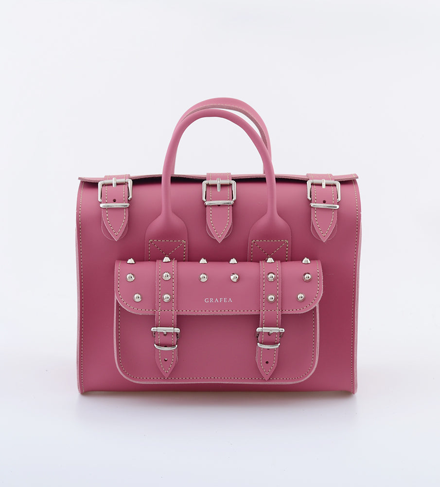 这款手提包内里具有很大的收纳空间,以金属磁扣闭合。
