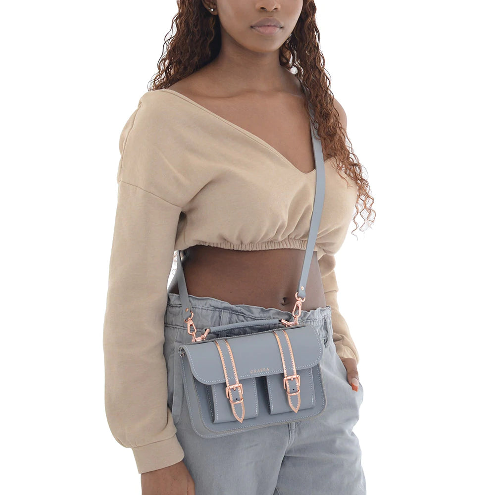 这款包包有两个正面口袋,一个主储物空间与一条可调节的肩带(可拆卸)。