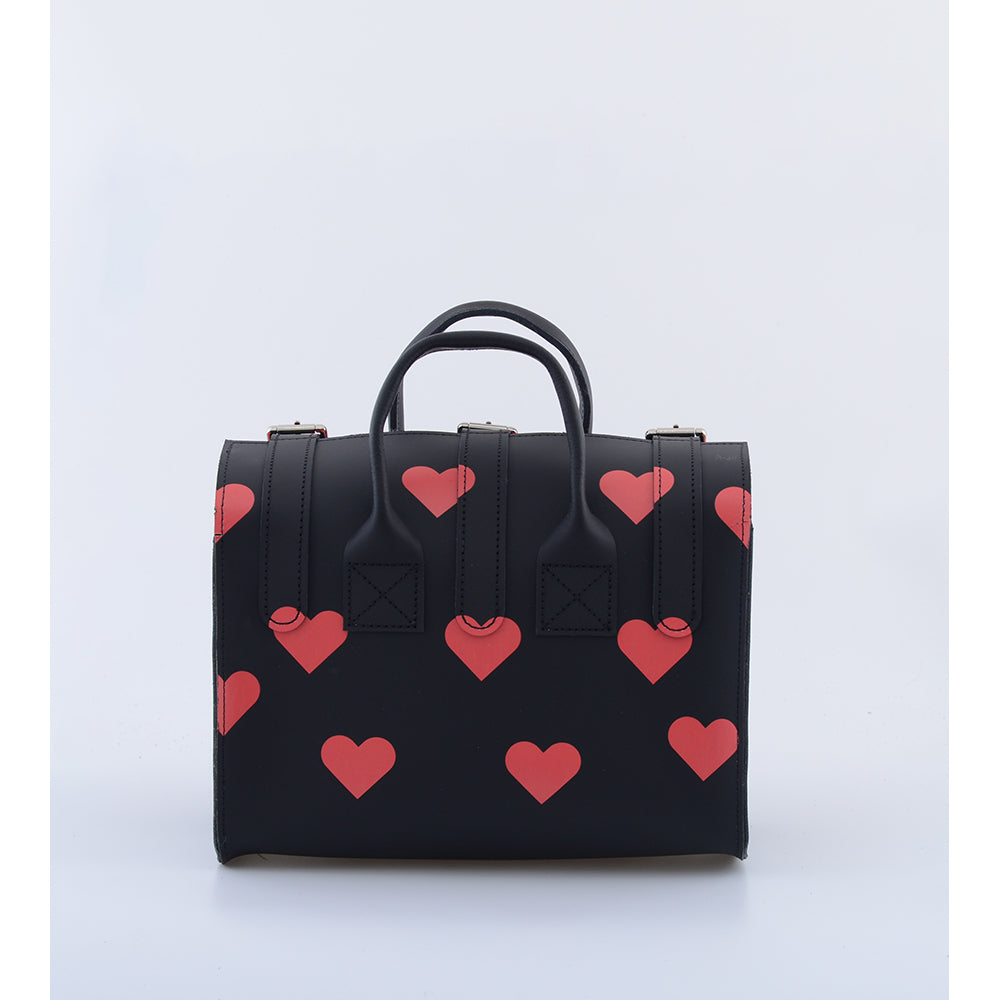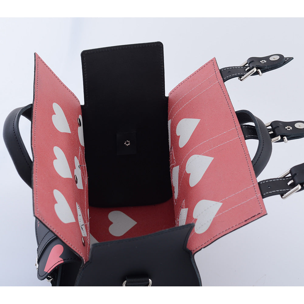 这款手提包内里具有很大的收纳空间,以金属磁扣闭合。